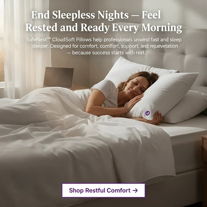 The SafeNest™ CloudSoft Pillow Bundle Pack is designed to fix that. Made with breathable fabric, hypoallergenic materials, and a supportive fill that keeps its shape, it naturally aligns with your head and neck for deeper, more refreshing rest.